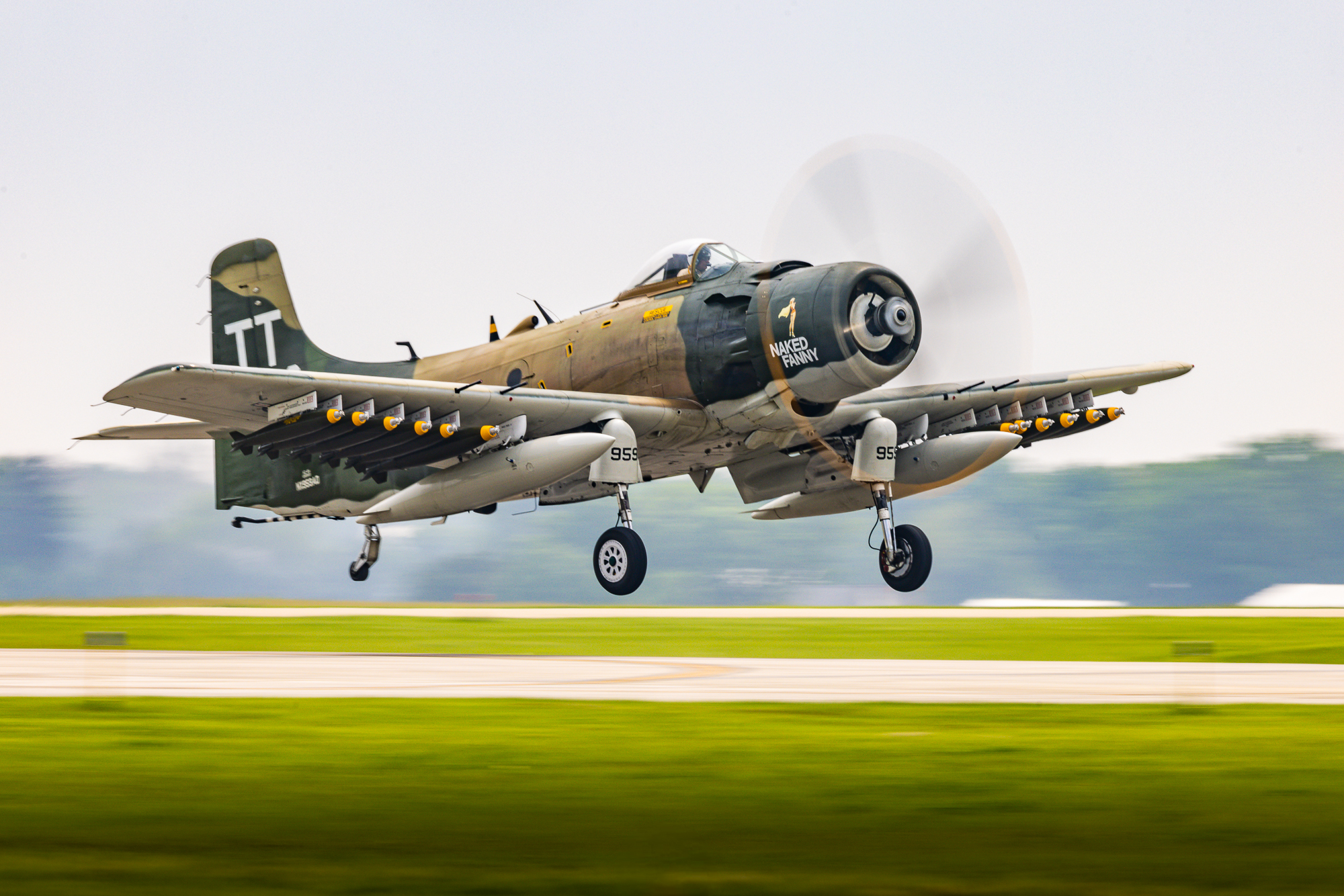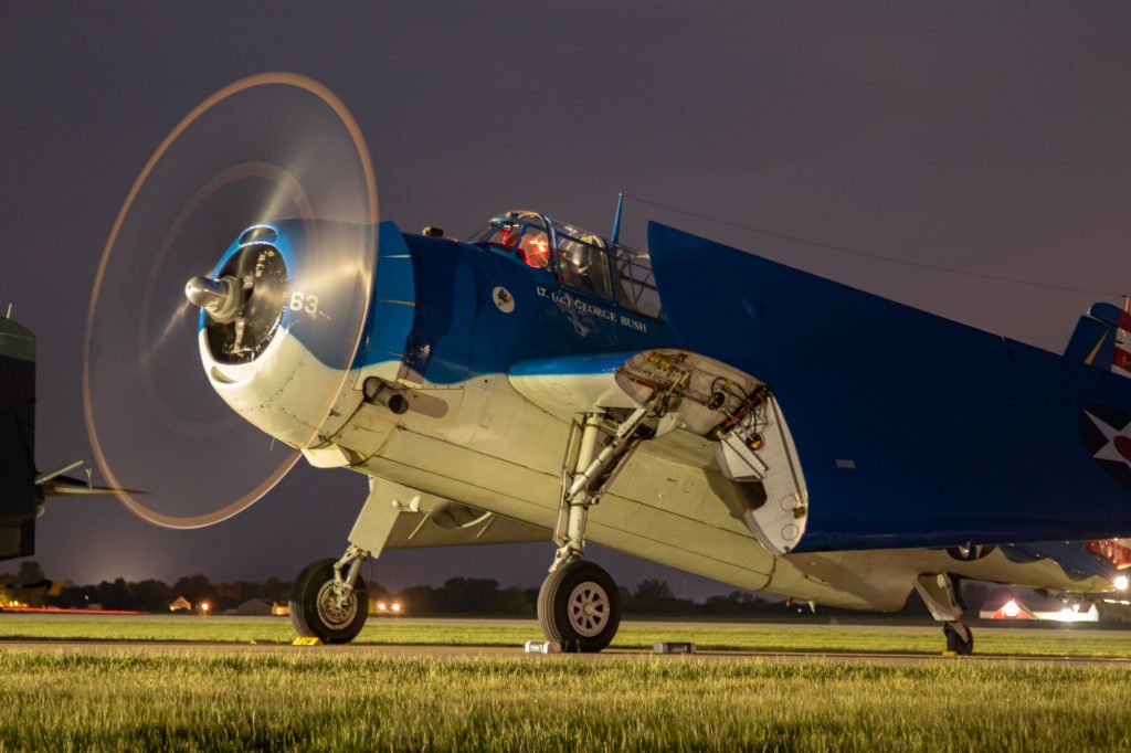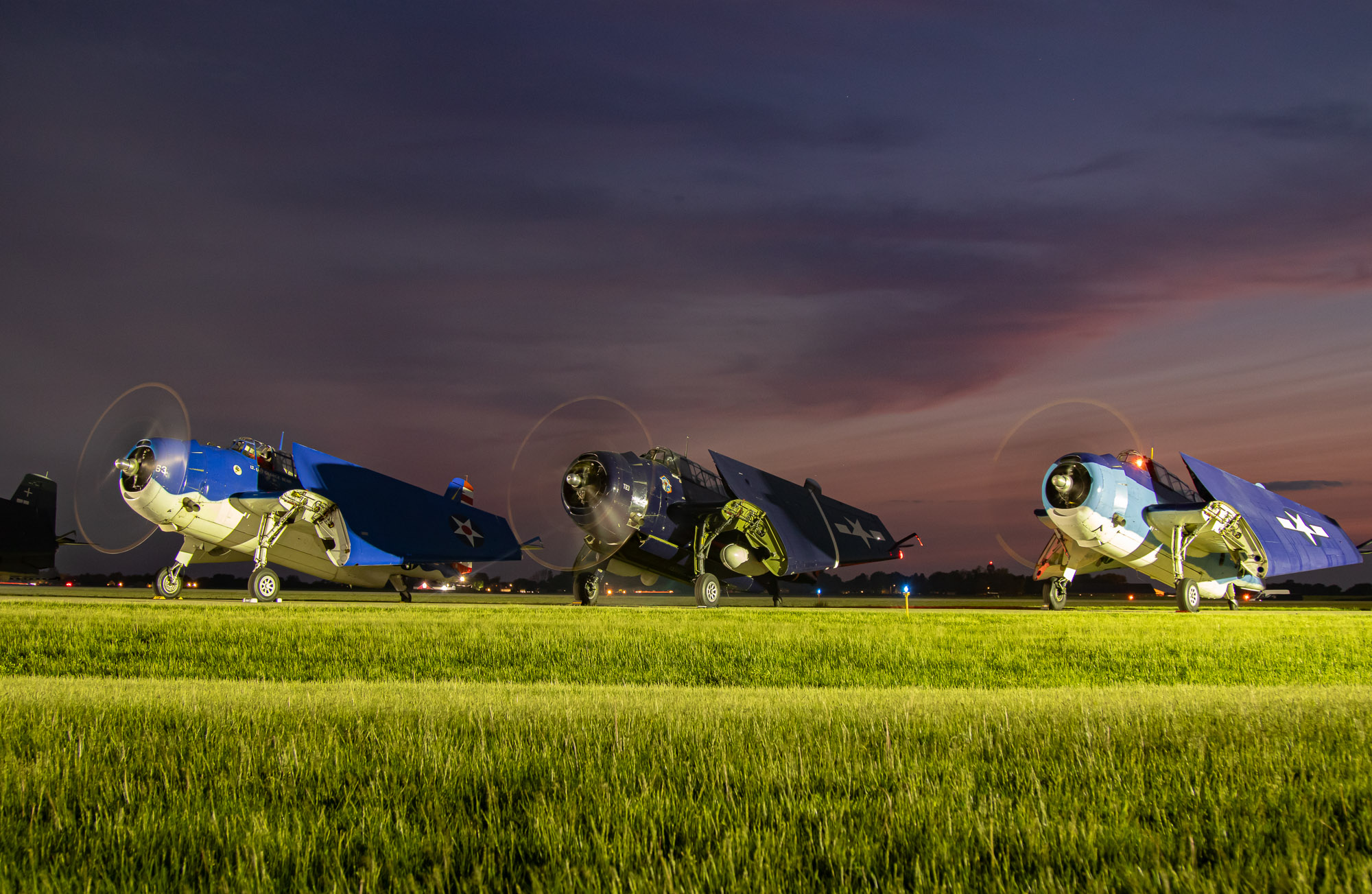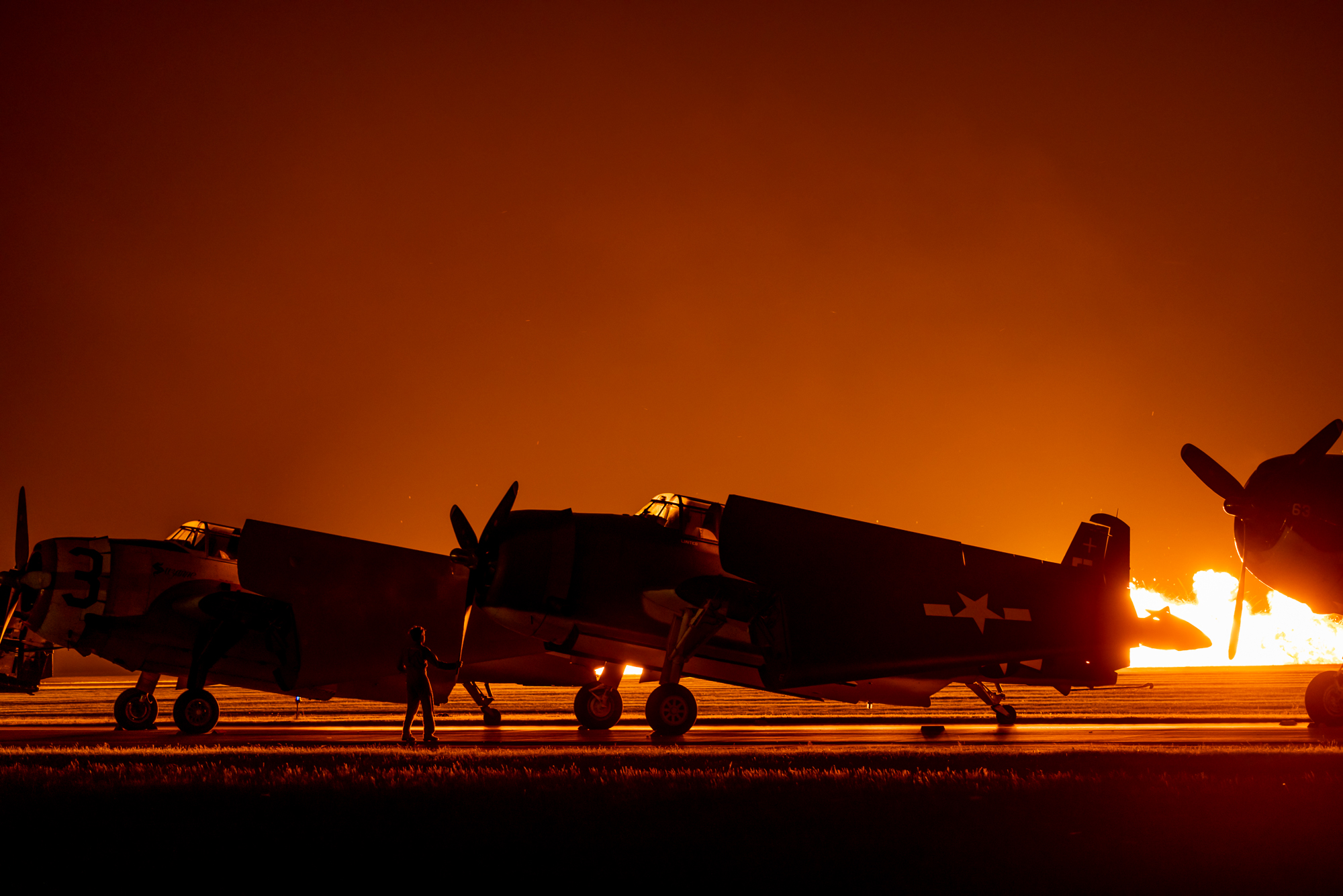 There were a few special treats this year, including the world’s only flying TBM tanker, based at Cape May airport in New Jersey, Tim Savage’s recently restored P-40 and a surprise Saturday-only appearance of Douglas A-1 Skyraider “Naked Fanny” from Aviation Heritage Foundation. Matt Younkin’s Twin Beech “Magic by Moonlight” flight was elegant as always. The Friday night engine run is a crowd favorite, and this year, a wall of fire capped the night with a bang.